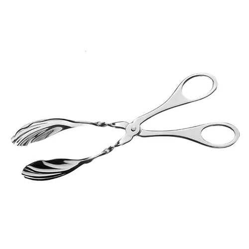 Elegant stainless steel salad serving tongs featuring a distinctive shell bowl design. The polished finish and comfortable grip make serving salads and side dishes effortless at any table setting. Durable, easy to clean, and perfect for both everyday meals and special occasions.