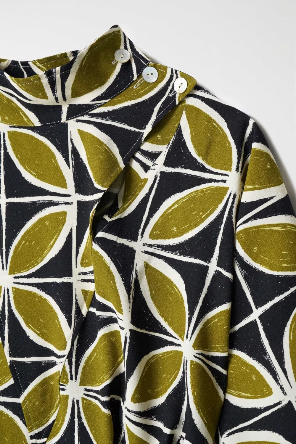 • Raised collar with buttons.