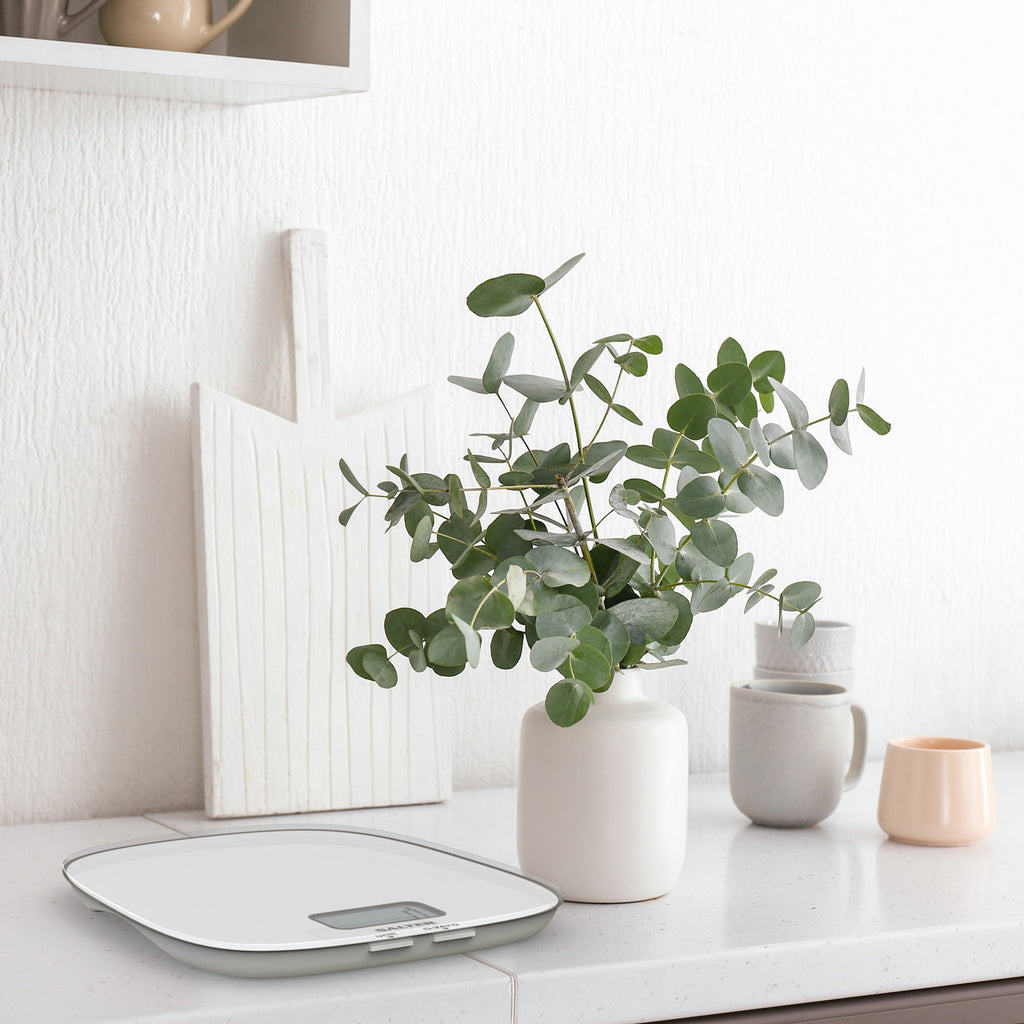 - Boasting a stylish and modern design, this Salter Contour Kitchen Scale will accurately measure your baking and cooking ingredients.