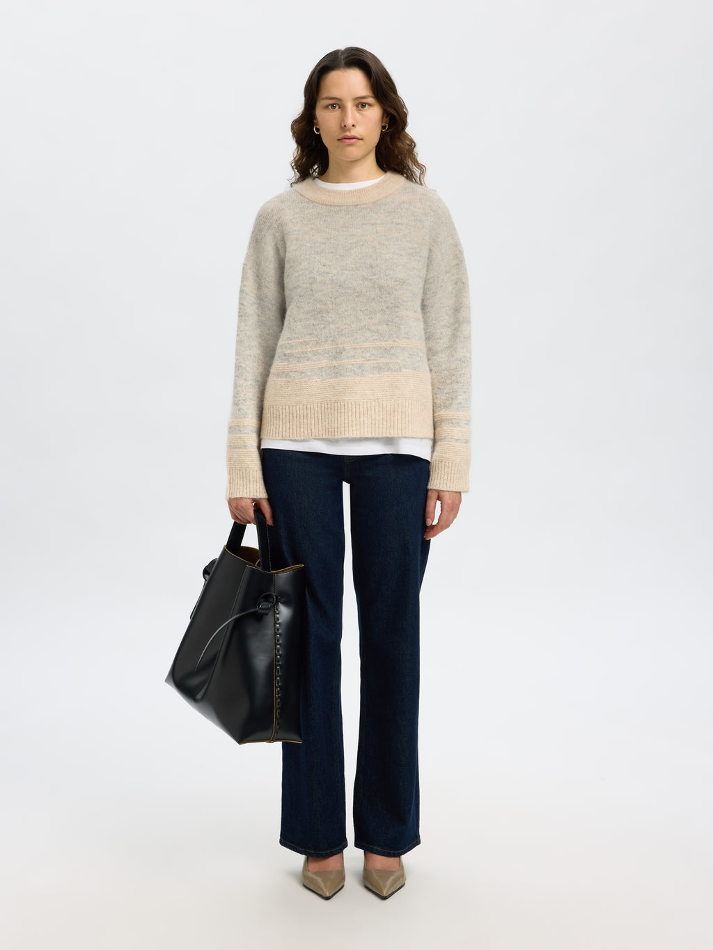 Alva Round Neck Jumper - Light Grey Melange/birch