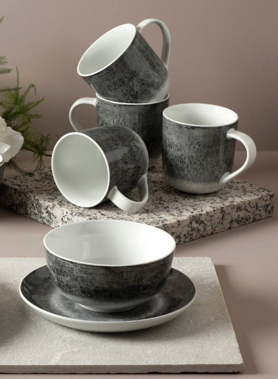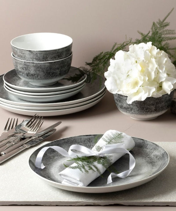 This 16 piece set from Portmeirion will create the perfect table top setting. Decorated with a speckled grey effect, this stylish design will be sure to get your dinner guests talking. The set includes four dinner plates, four side plates, four cereal bowls and four mugs. A perfect starter set an gift for a new homeowner, newlyweds or just to treat yourself to a new dining set.