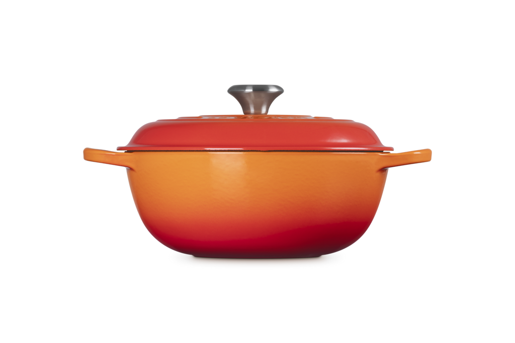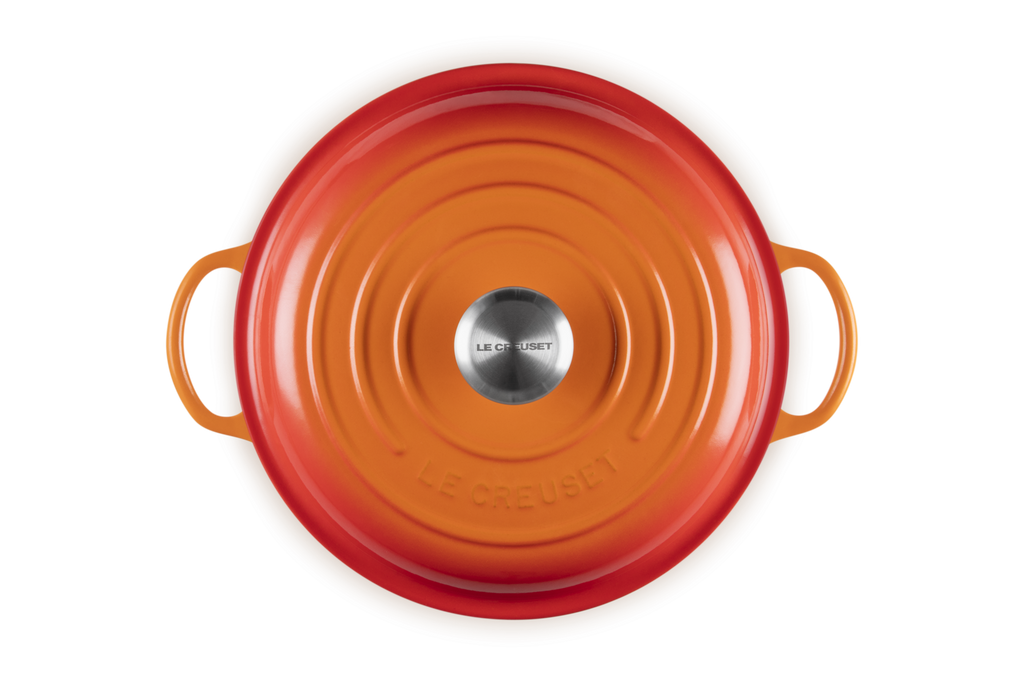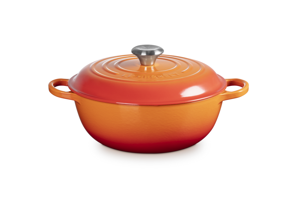 Simmer your favourite stew on top of your stove or leave it to bubble in the oven, letting all those delicious flavours deepen and mingle. Thanks to sloped sides, a domed lid and even heat retention, this cast iron round pot makes one pot suppers simple and satisfying to cook.