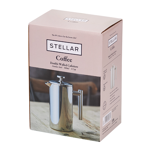 Enjoy a well-brewed coffee with the elegantly-styled Stellar Double-Walled Cafetiere. Premium features include double-walled construction for superior thermal performance, stainless steel filter for lasting use and argon welded dribble-free spout. This timeless stainless steel design is dishwasher safe.