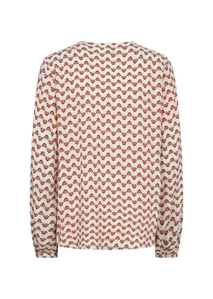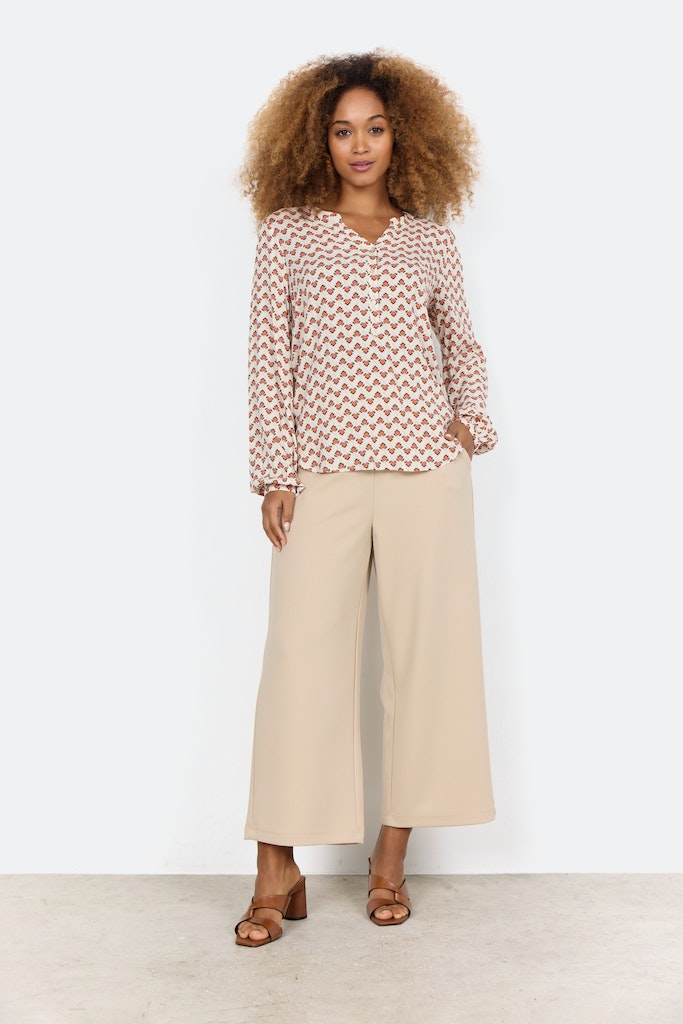 Dorella 2 Split Neck Print Blouse - Dusty Clay Combi
