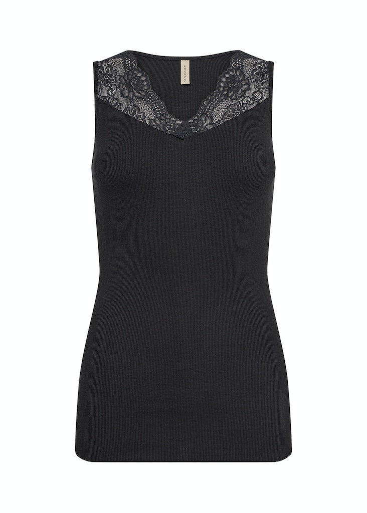 Lace Detail Sleeveless Top - Black