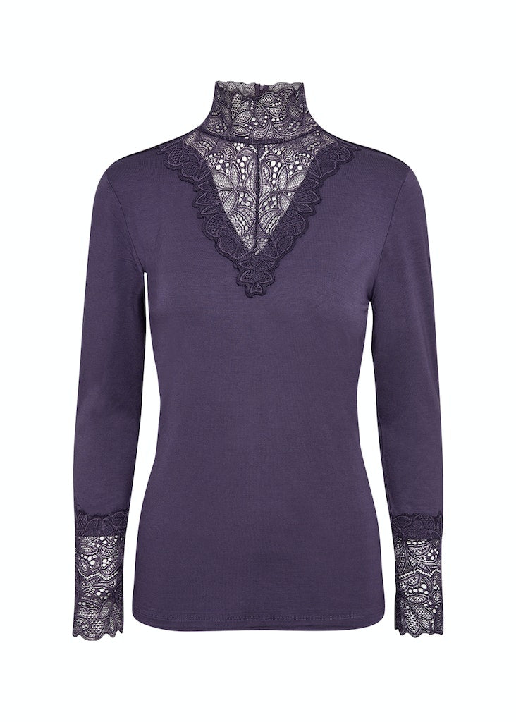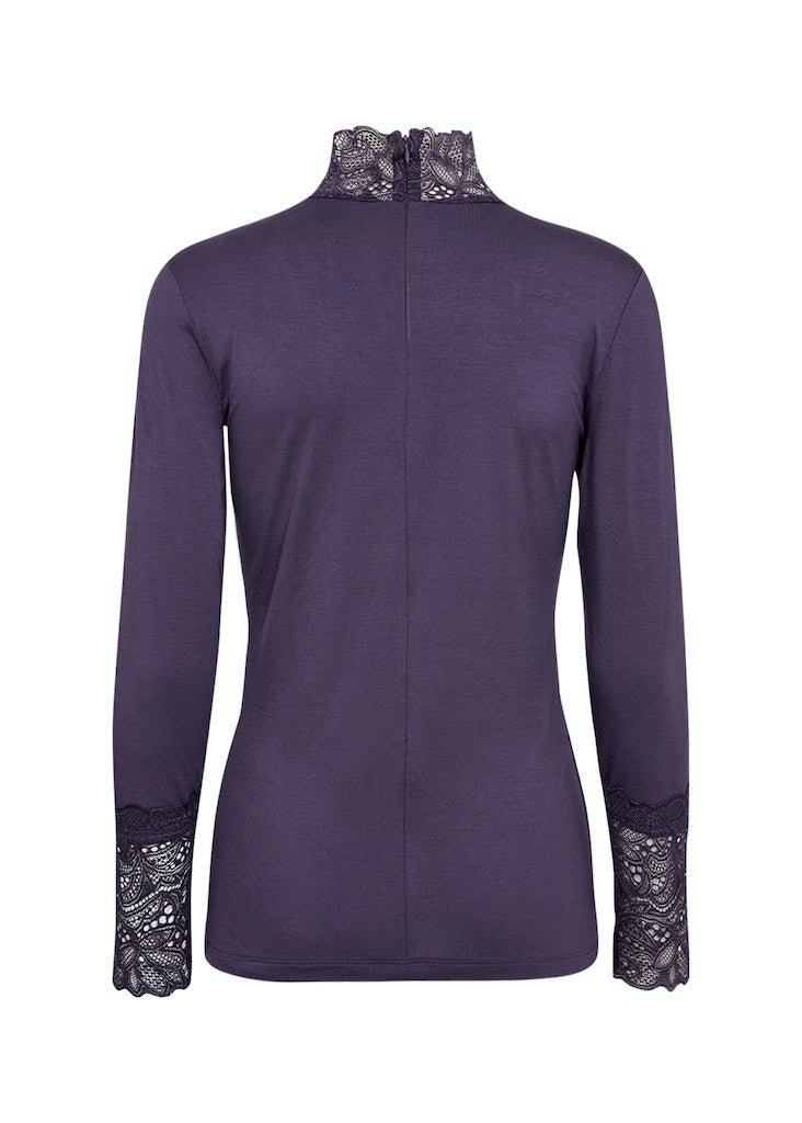 Lace Neck & Cuff T-Shirt - Dark Grape
