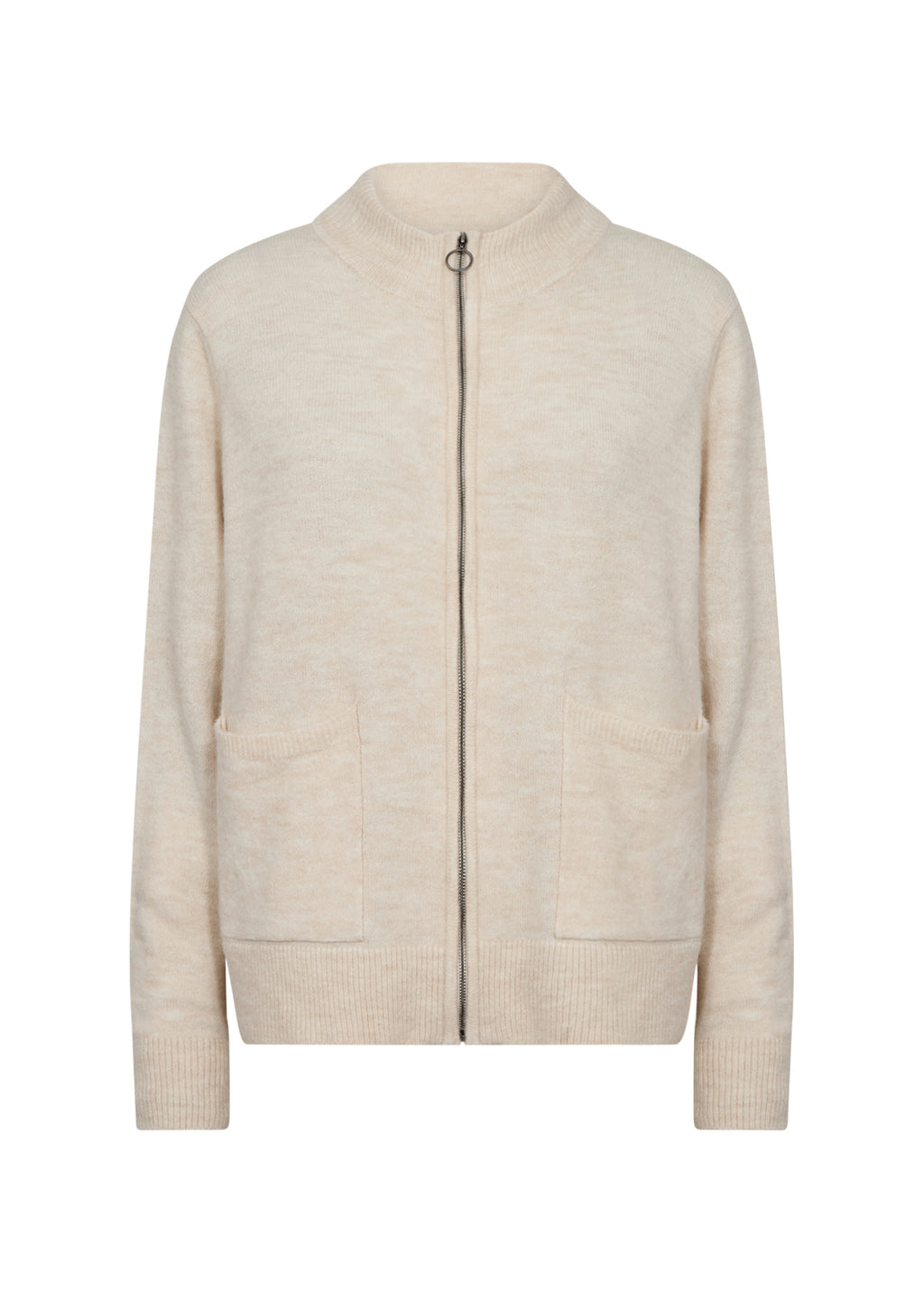 Nessie 59 High Neck Cardigan - Cream Melange