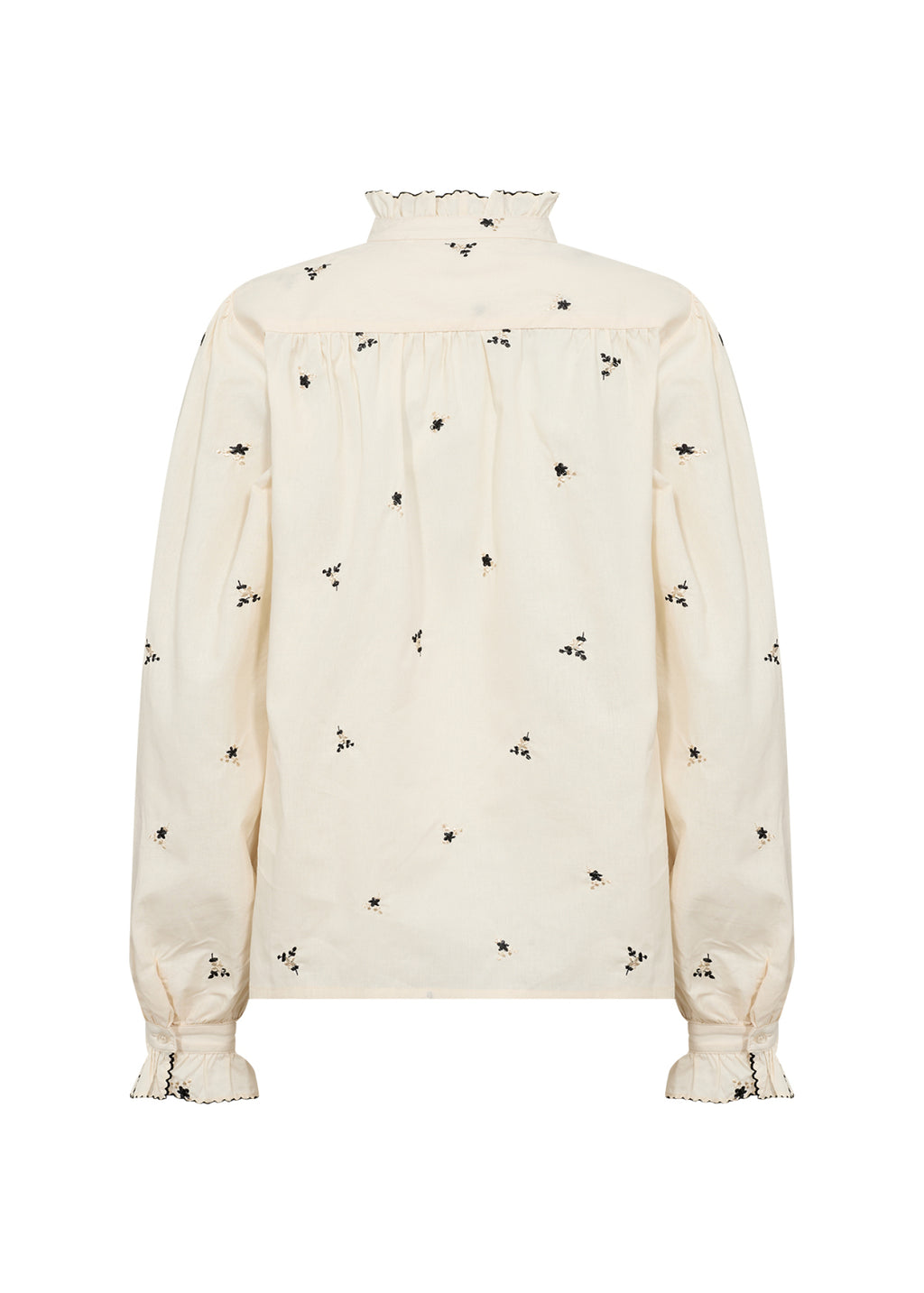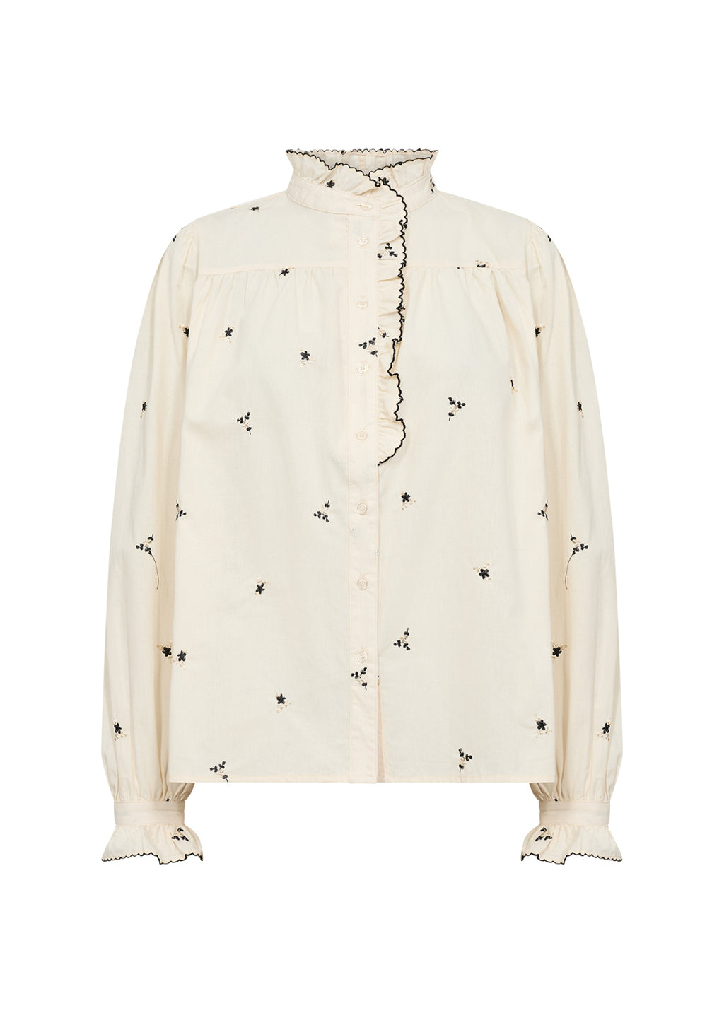 Viben1 Ruffle HighNeck Shirt - Cream Combi