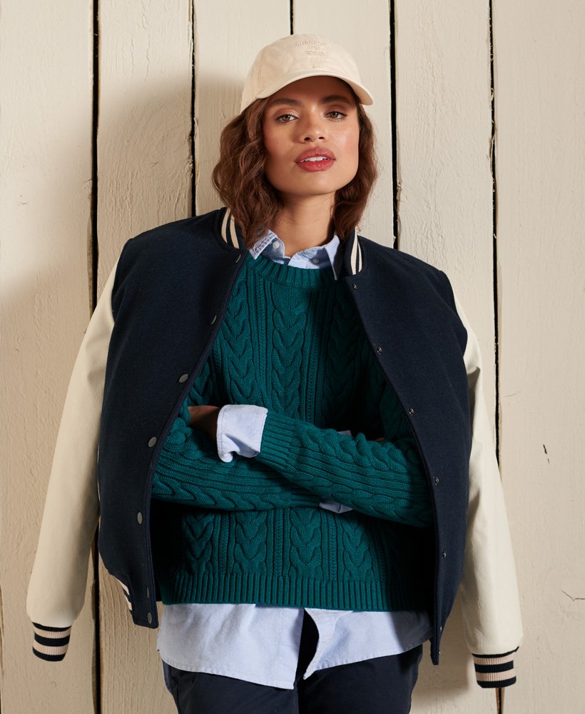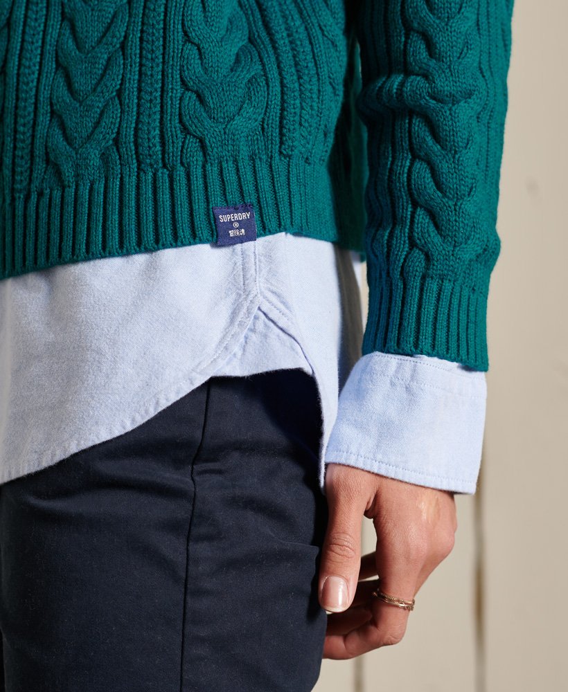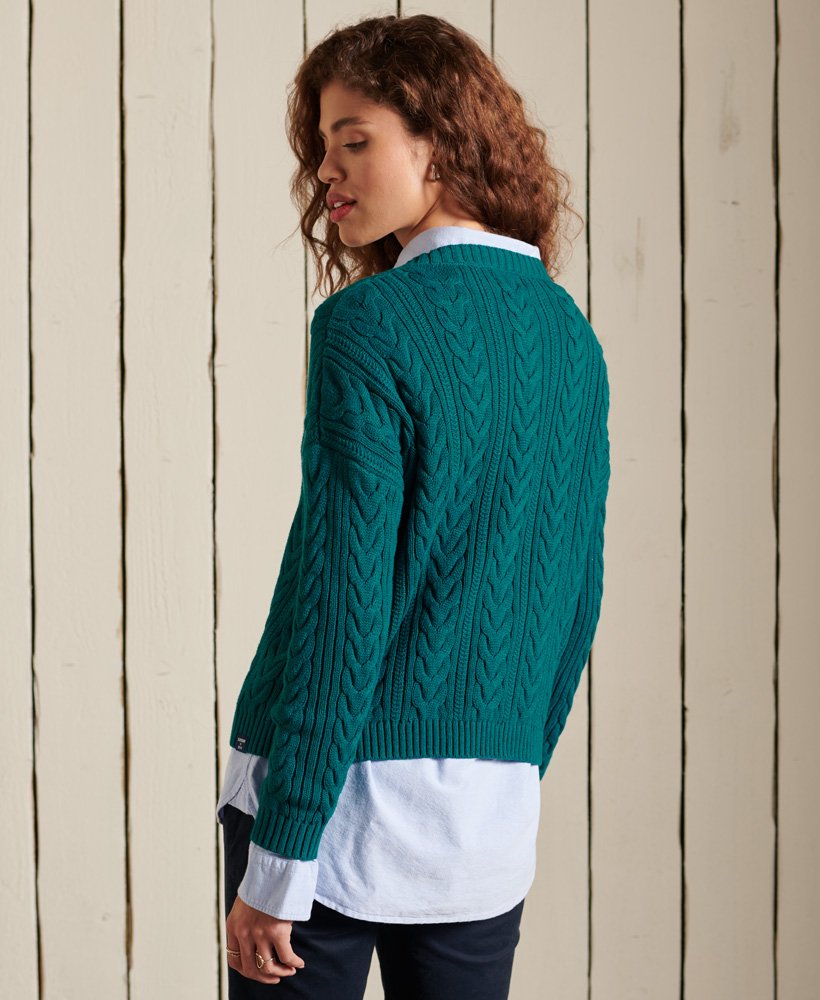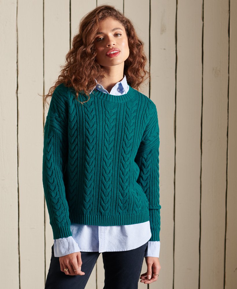 Dropped Shoulder Cable Crew Jumper - Deep Teal