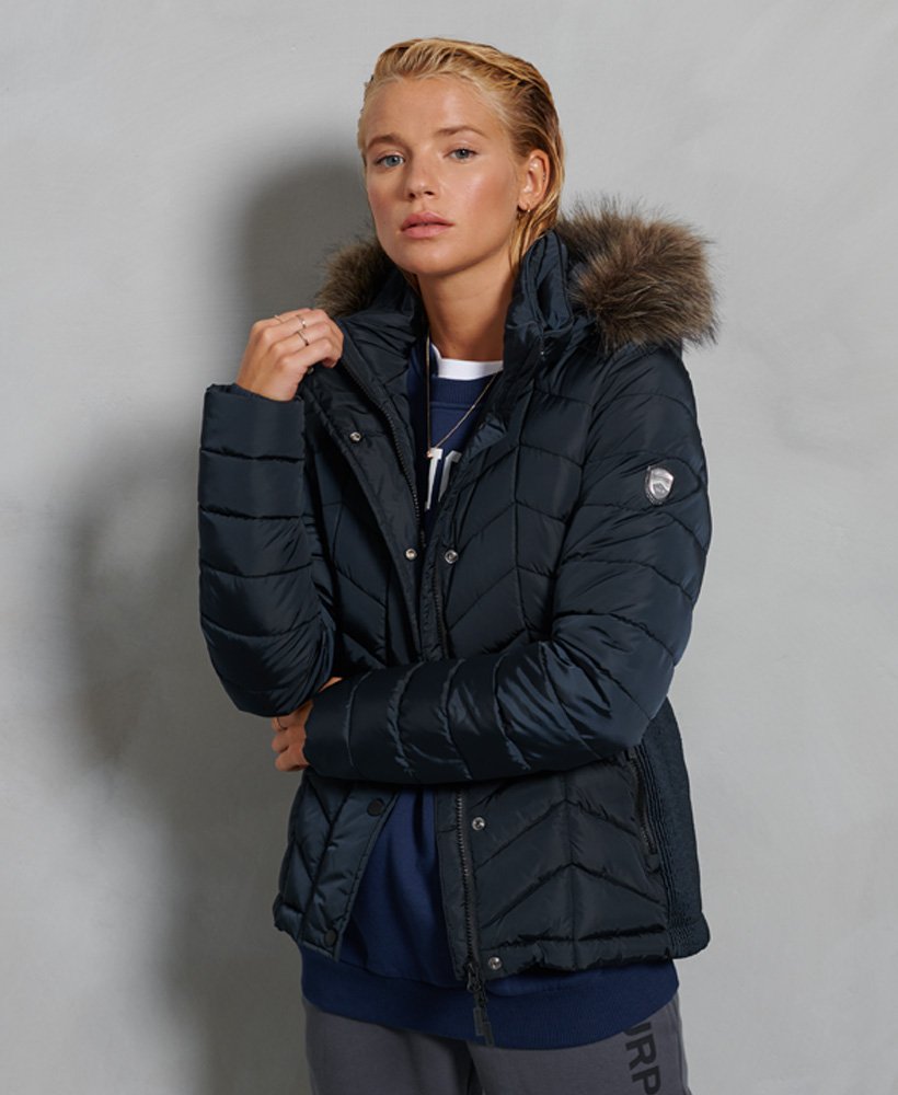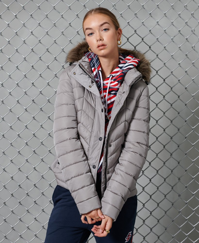 Material: Body - 100% Nylon. Padding - 100% Recycled Polyester. Fur Hood - 53% Acrylic, 24% Modacrylic, 13% Polyester.