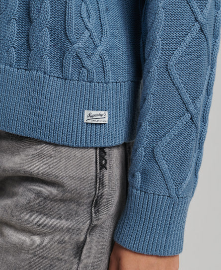 Vintage Cotton Cable Crew Jumper - Livid Blue