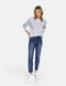 - Mid-rise waist.