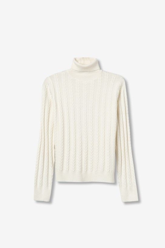 Relaxed fit sweater with front seam, high neck, long sleeves and ribbed finishes.