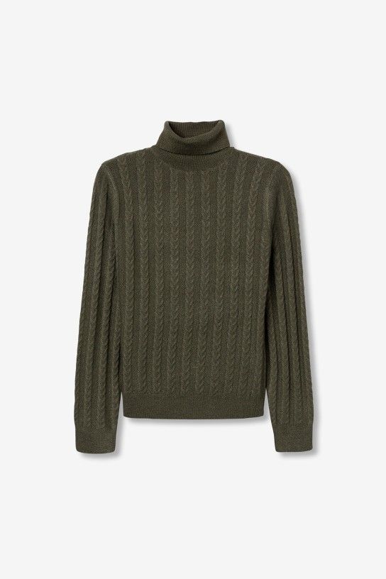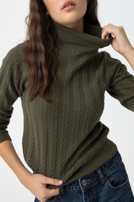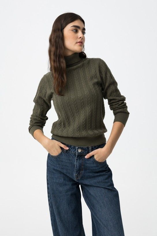 Relaxed fit sweater with front seam, high neck, long sleeves and ribbed finishes.
