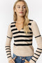 - All over striped patterning.