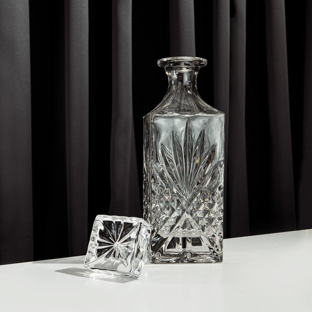 The Killarney Crystal Trinity Decanter Gift Set features a sophisticated decanter adorned with our distinctive Trinity design. This set also includes four double old fashioned whiskey glasses and is beautifully packaged in a satin-lined gift box, making it an exceptional choice for discerning whiskey enthusiasts.