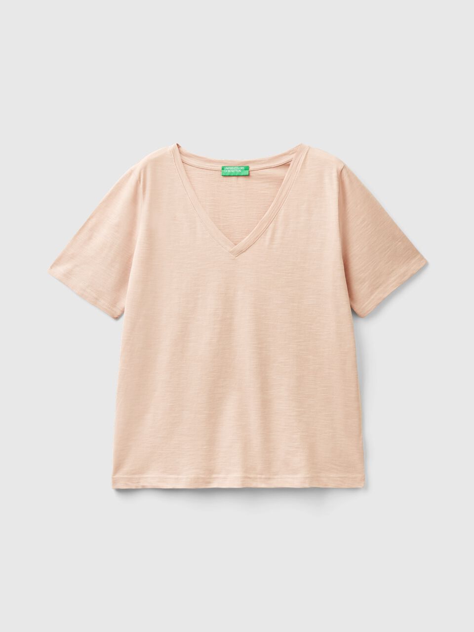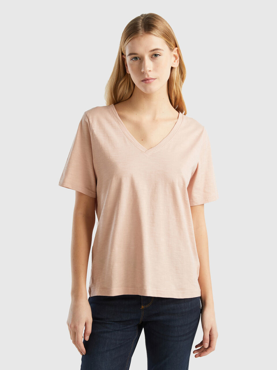 Basic Slub Cotton V Neck T-Shirt - Blush