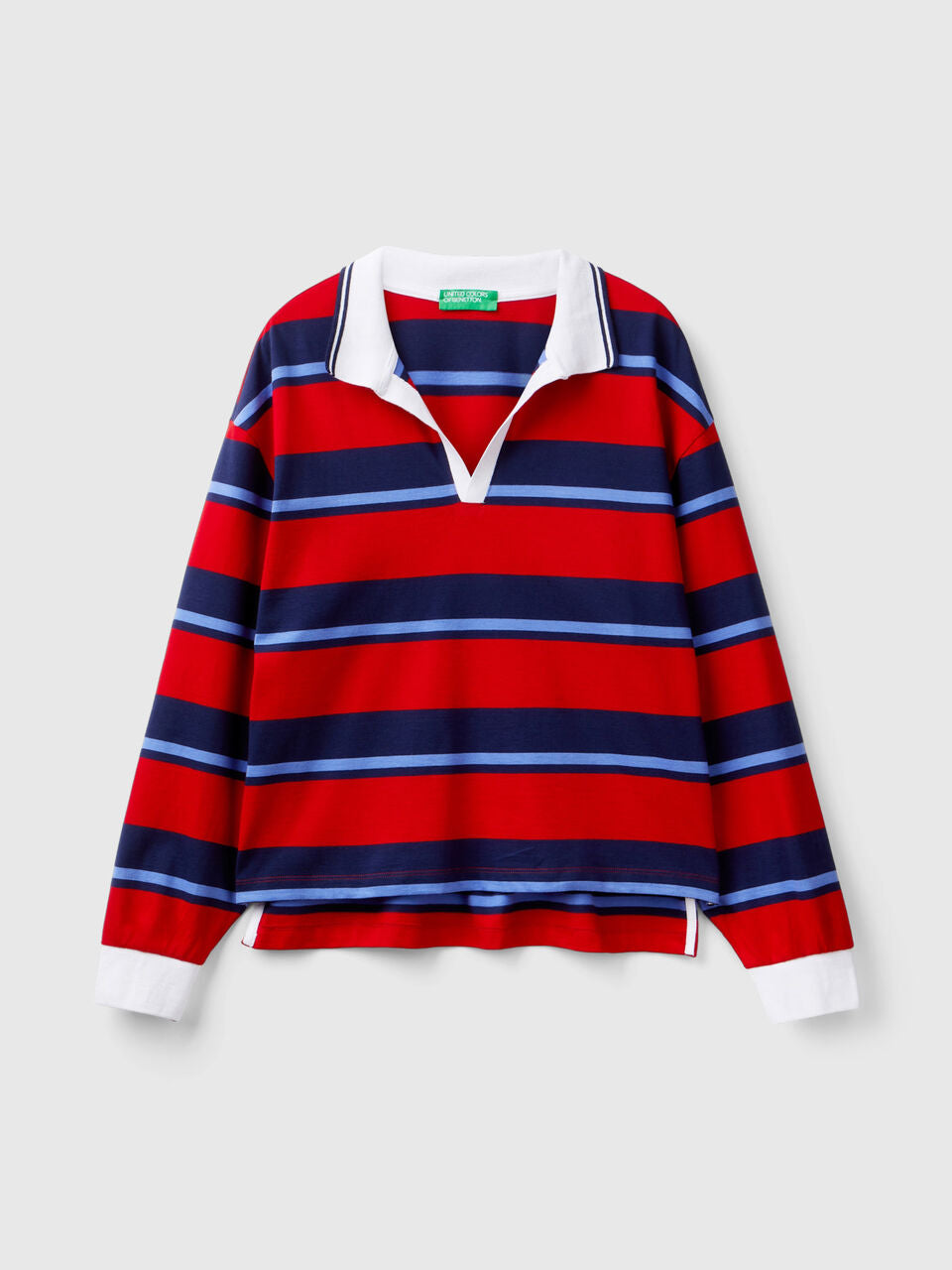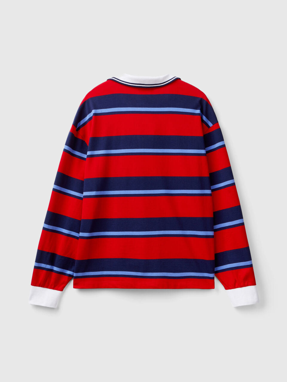- Cuffs and neckline trimmed in white.