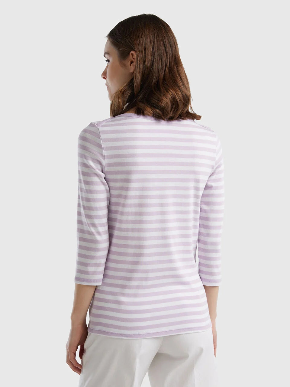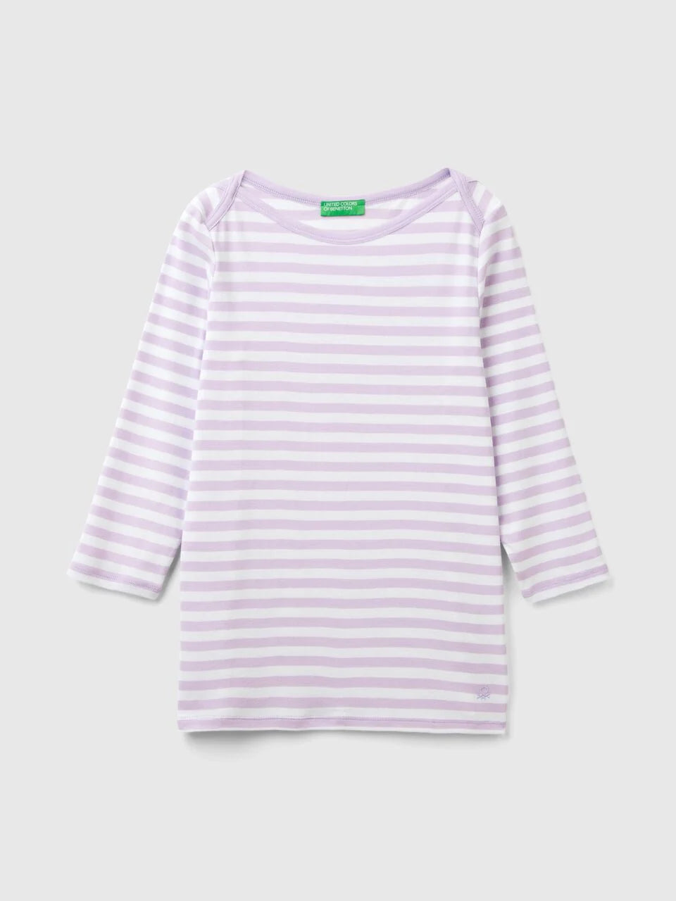 Boat Neck Stripe LS T-Shirt - White/lilac Stripe