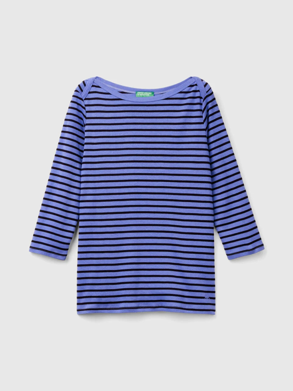 Ucb Striped 3/4 Sleeve T-Shirt - Periwinkle