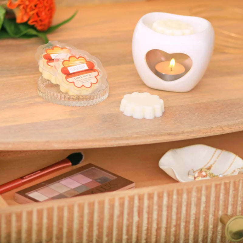 Heart and Home Wax Melts are a great way to quickly fill a room with fabulous fragrance. Renewable, sustainable, vegan friendly and kinder to the environment, the fragrance-rich wax melts are so easy to use! Simply pop the pretty scalloped-shaped wax melt into a warmer, light an unscented tealight below and enjoy up to 12 hours of aromatic indulgence as the fragrance is released.