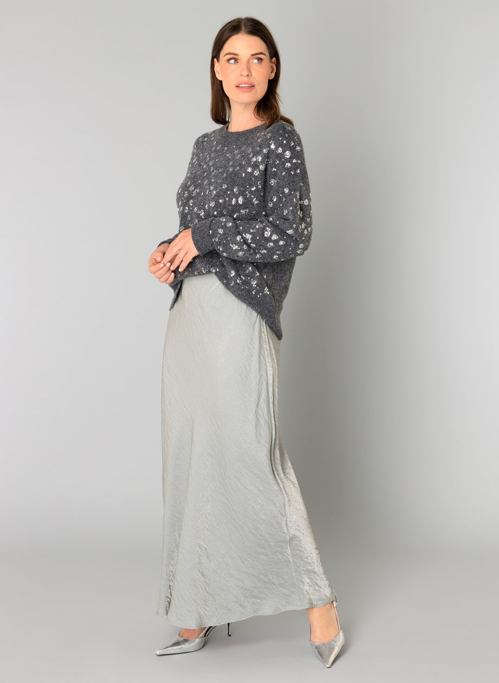 Braelyn Print Round Neck Jumper - Dark Grey Melange
