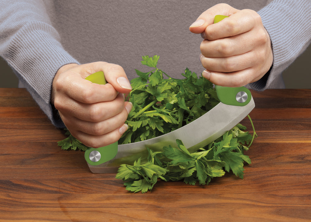 • Rounded stainless steel blade perfect for chopping fresh herbs or garlic.
