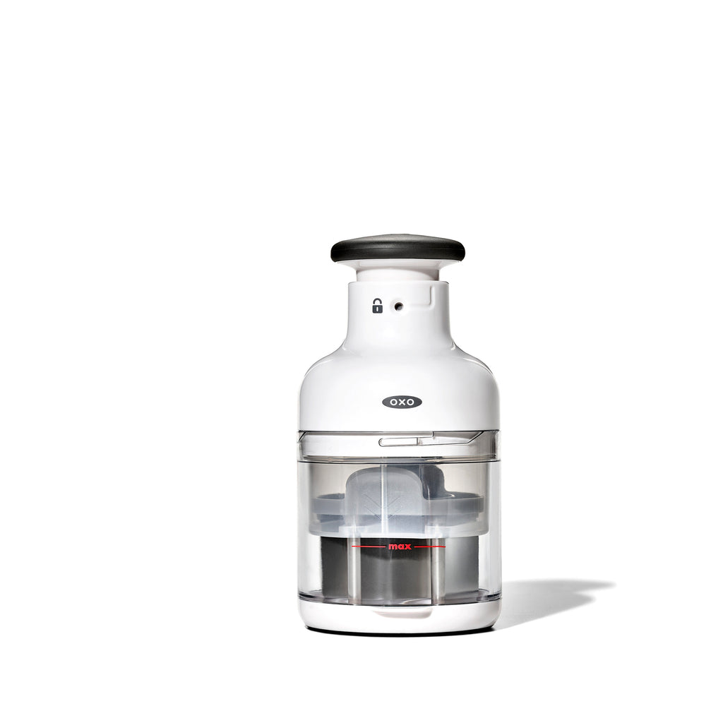 Need to chop up onions, celery, and carrots for a quickly? How about some tomatoes for a salsa? Or nuts for a batch of brownies? The OXO Good Grips Chopper can handle all these tasks much faster than your chef’s knife. (It’s safer, too.) It features a sharp, stainless steel blade that rotates with every single press of the knob, resulting in perfectly even pieces. Load it up and then just press the knob to start chopping. It’s comfortable and easy to use, and the large catcher cup has convenient measurement markings. Of course, the whole thing comes apart for cleanup. Dishwasher safe.
