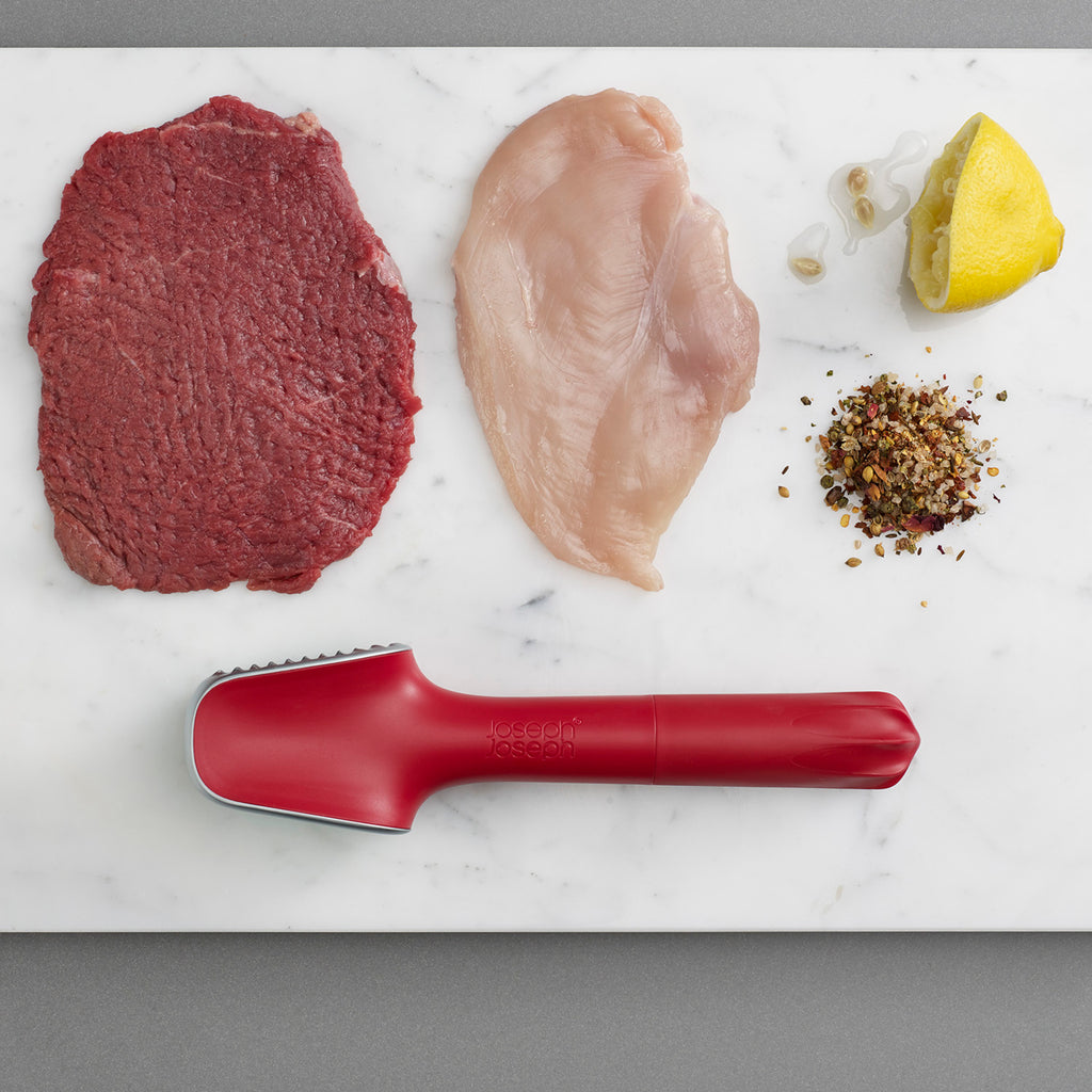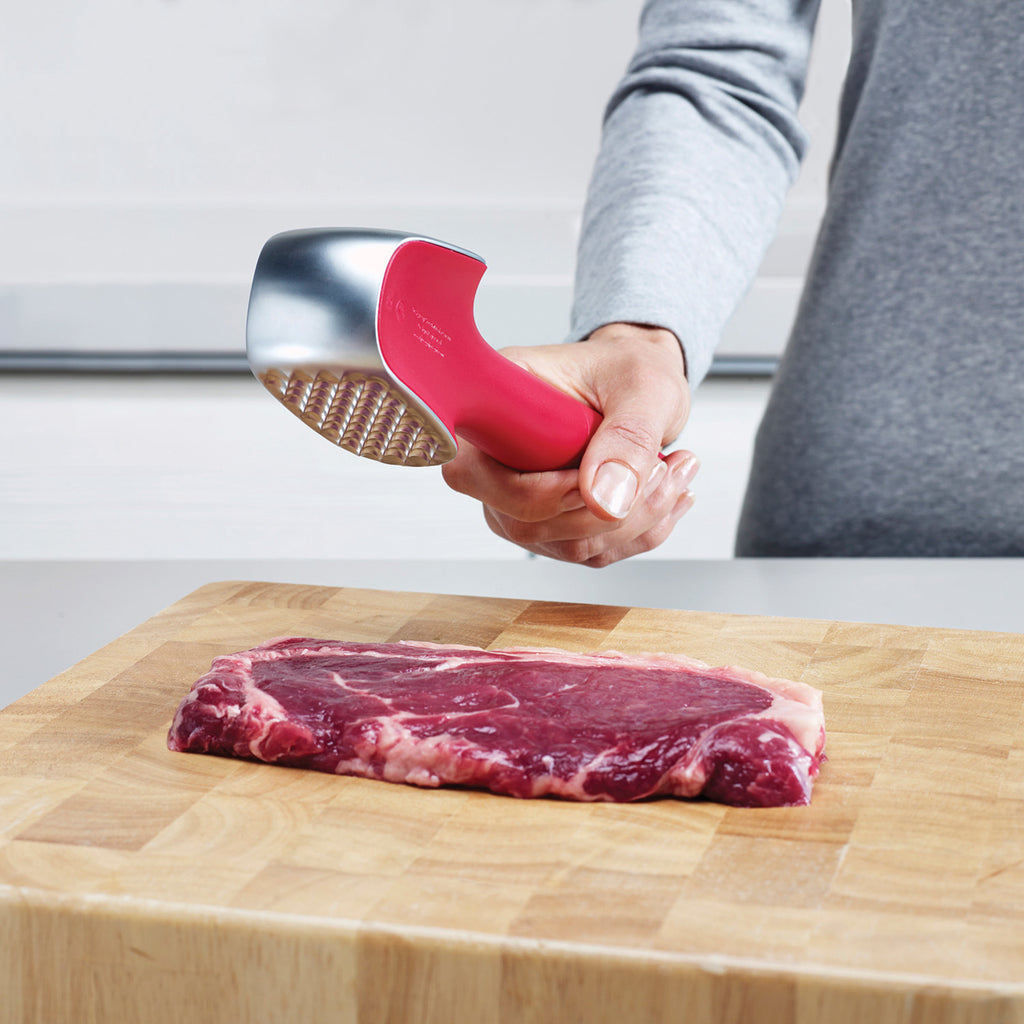 - Clever design includes two surfaces for tenderising and flattening meat.