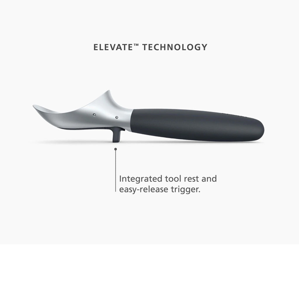 Meet our easy-release ice-cream scoop with a trigger mechanism and an integrated tool rest for ultimate function and hygiene.