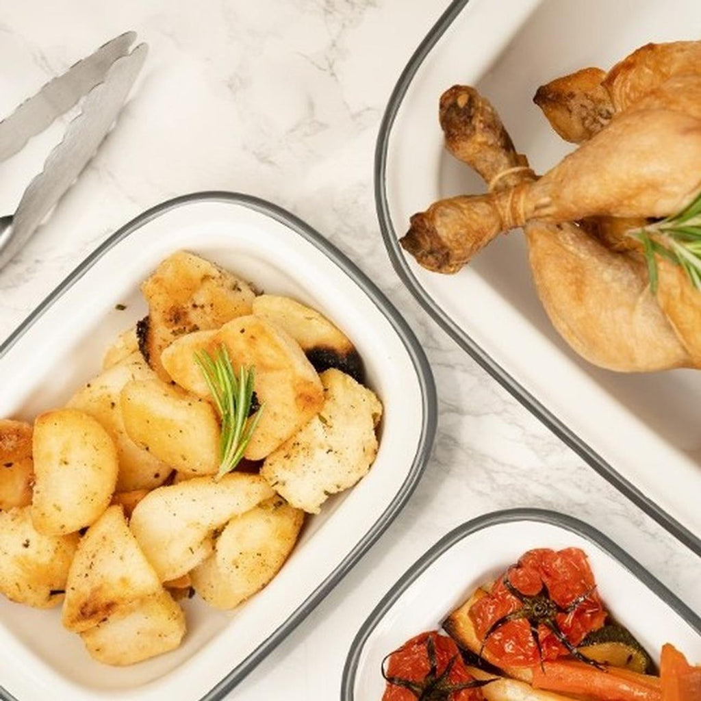 Made from hard-wearing enamel coated carbon steel that’s oven safe up to 280C, this dish is also safe to use in the fridge or freezer so you can create, cook, freeze and reheat meals with ease.