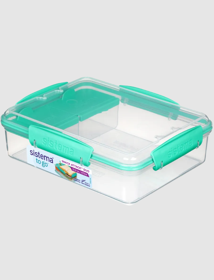 The Sistema® Snack Attack™ Duo TO GO™ is perfect for transporting your lunch and snacks to work, school or the park while helping to cut down on using plastic bags, cling film and foil.