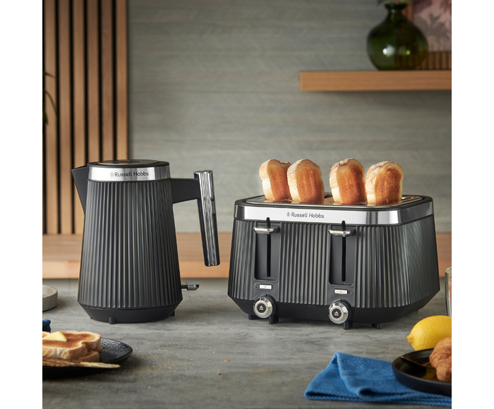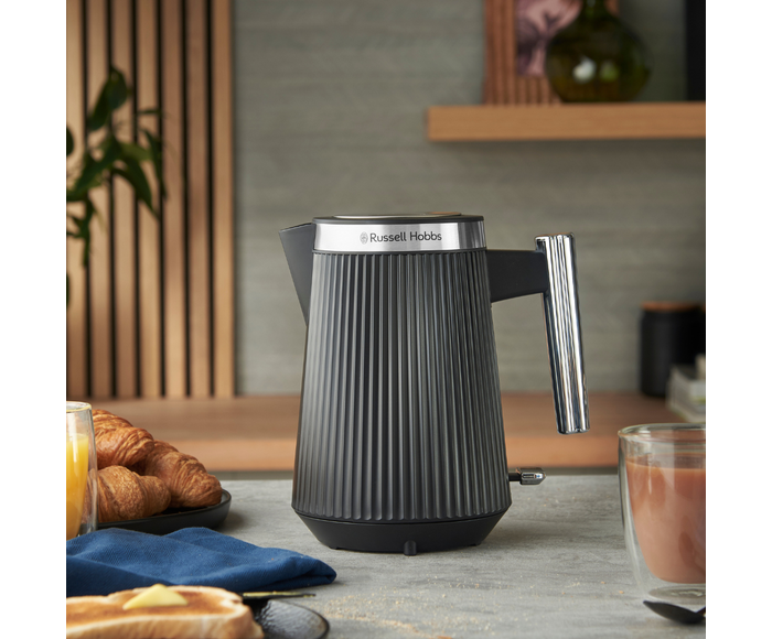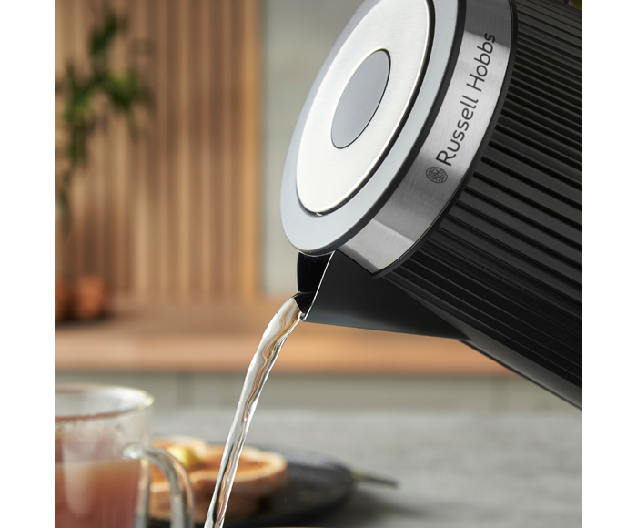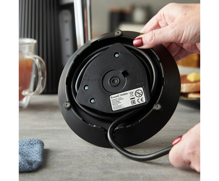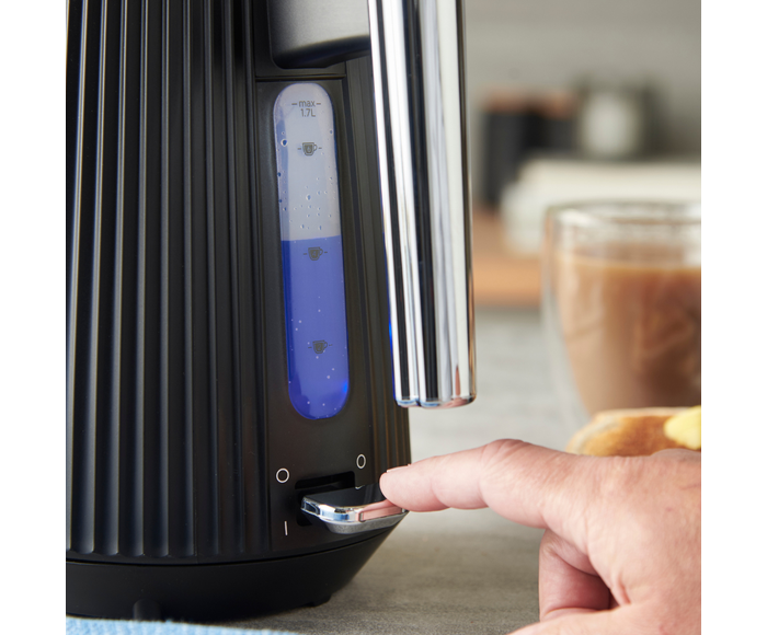 The Russell Hobbs Brontë Kettle Matte Black is designed to stand out while you settle in for a cuppa. Stylish design, chrome accents, and its stunning interior illumination come together to make this kettle a focal point for your kitchen. With a perfect pour spout, push-to-open lid and 360 base with cord storage, this kettle will serve you well.