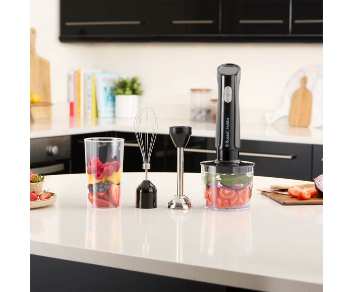 Can’t decide between a chunky veg stew or a creamy smooth carbonara? Get started on both in no time with the Russell Hobbs Desire Matte Charcoal 3-in-1 Hand Blender. With chopper, whisk and blender accessories, a generous capacity, 2 speeds and detachable, easy-clean parts, it’s the perfect go-to compact kitchen assistant.