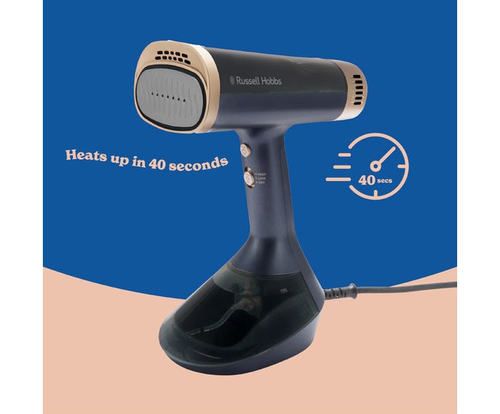 The Russell Hobbs® Steam Genie™ VacuSteam combines steam and suction technology with a heated ceramic press plate to effortlessly smooth out creases in just one pass. With three adjustable settings, 1500W power, and a 24g steam output, it heats up in 35 seconds and delivers 7 minutes of continuous steam from its 200ml water tank. The powerful suction holds fabric firmly against the press plate, enhancing the effectiveness of heat and steam for a flawless finish. Designed for convenience, it includes a cleaning brush, automatic shut-off, and a 3-meter cord to streamline your garment care routine.
