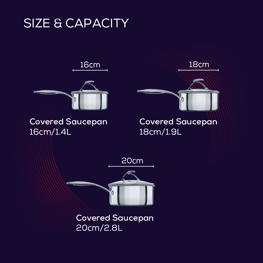 SteelShield™ Polished Stainless Steel Hybrid Non-Stick Saucepan & Lid Set - 3 Pieces
