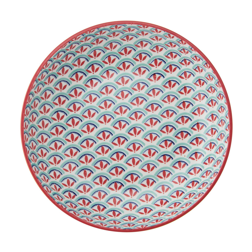 Vibrant stoneware bowls with a shallow design, this versatile bowl is perfect for serving pasta, stews, salads, stir-fries, and more. Add a touch of charm to your tablescape. Beautifully designed with eye-catching patterns, this bowl is perfect for everyday meals and special occasions. It is designed for convenience and is microwave and dishwasher-safe, making it easy to use and care for.