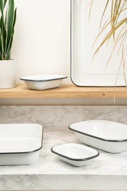 Versatile and lightweight it’s finished in plain white with a grey rim that suits both traditional and modern style kitchens.