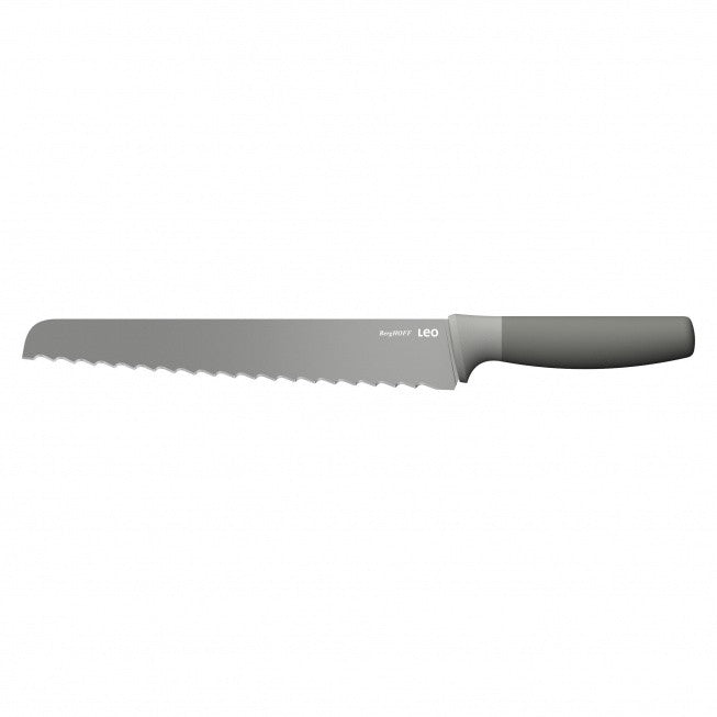 Make quick work of the most crusty breads as well as the most delicate tomatoes with the Leo bread knife. The lightweight knife with recycled soft-touch handle is a pleasure to use and makes the thinnest slices for a clean-cut result. Its serrated stainless steel blade with non-stick coating saws right through a tough crust without pressing the tender crumb.