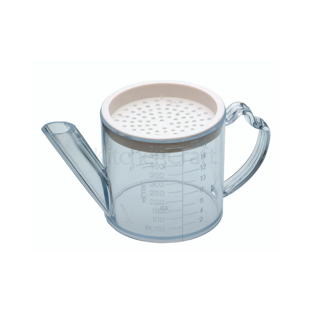 Designed to pour from the bottom to separate fat and food from gravy and sauces. Comes with marked measuring scales and the integrated straining lid to filter food from the gravy.