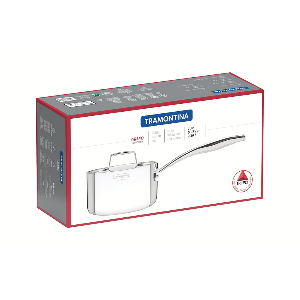 The Tramontina Grano Saucepan is manufactured in Brazil and constructed from tough stainless steel that’s corrosion resistant for long-lasting kitchen use. The Grano collection is designed to withstand repeated usage even in the most demanding kitchens, this cookware is ideal for home and professional cooks who want the utmost in quality and performance. The 3-Ply construction, consisting of a sandwich of stainless steel-aluminium-stainless steel, provides heat from all sides, not just the base, the result is even heat distribution with optimum performance and more efficiency.