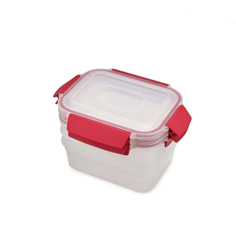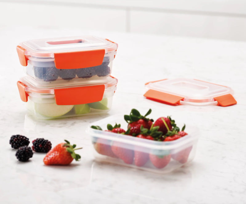 Perfect for leftovers, these sets include three same-sized food storage containers that are 100% leakproof and airtight but also stack neatly inside each other when not in use.