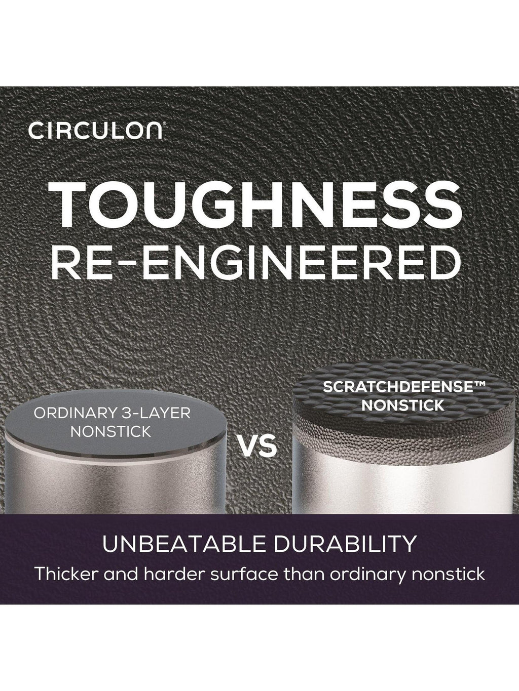 Circulon ScratchDefense A1 Collection with Extreme Non-Stick - that won't scratch, ever. Featuring ground-breaking Non-Stick technology, used in the Aerospace industry to provide extreme Non-Stick durability, eliminate scratching, stick, and flaking. Circulon ScratchDefense Extreme Non-Stick lasts 130x longer than the competition with laboratory tests simulating 200+ years of daily wear and tear.