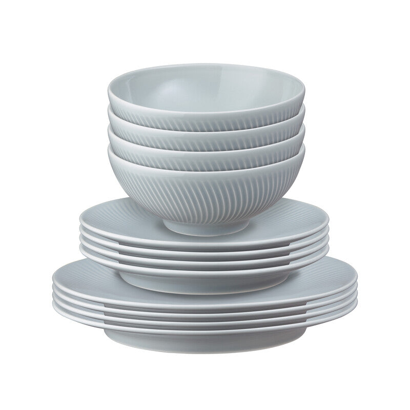 This set contains 4 x dinner plate, 4 x medium plate and 4 x cereal bowl.