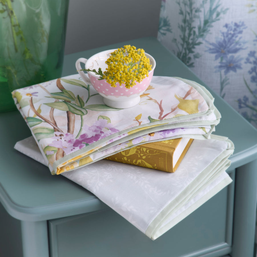 Experience the serene charm of the Arianna duvet cover set from Appletree. Featuring a delicate country garden foliage pattern on a 200 thread count cotton fabric in soft natural shades, it embodies refined elegance. The reverse side showcases a timeless plain dye, offering both classic appeal and adaptable style.