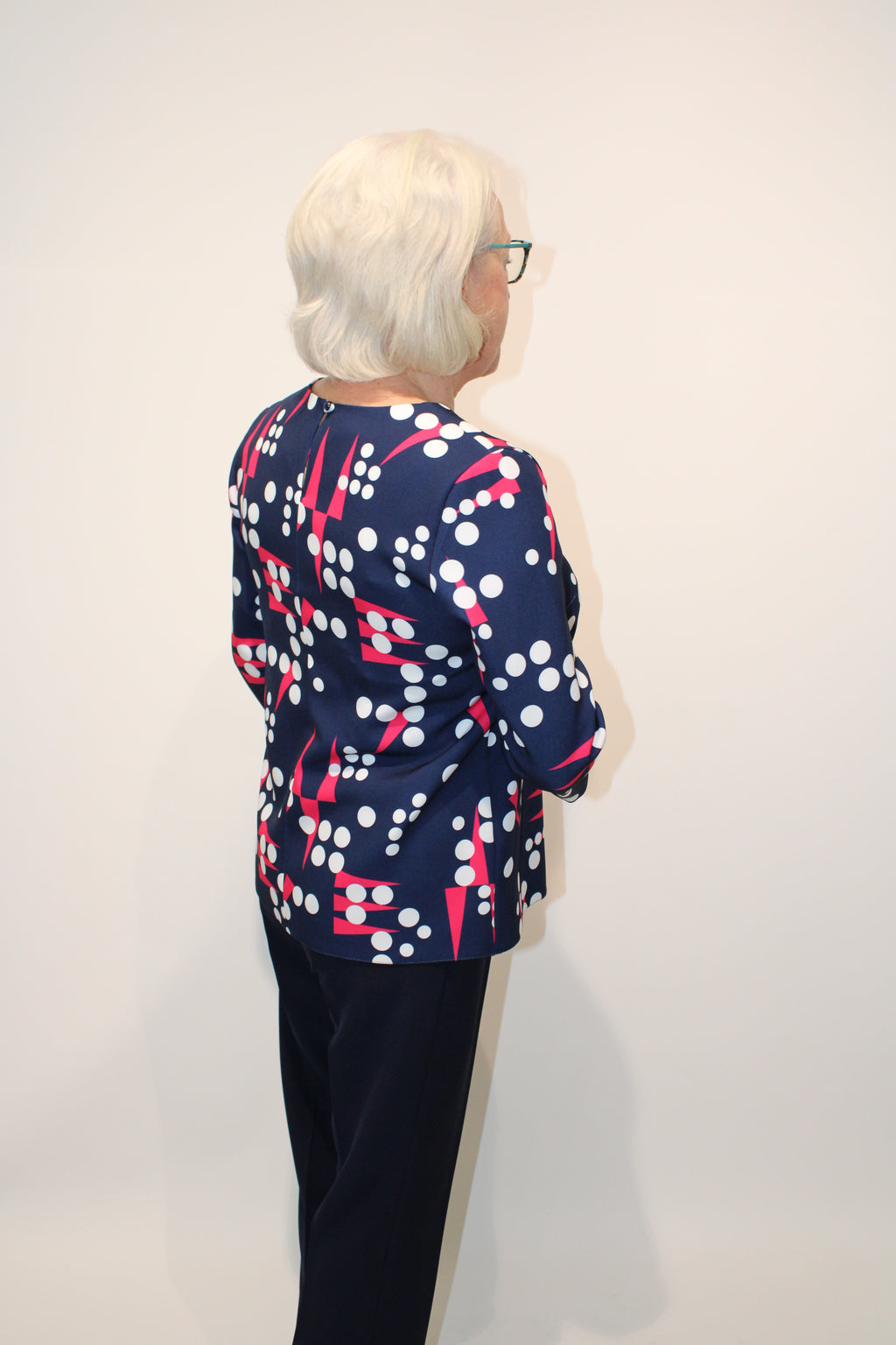 - All-over polka dot pattern.