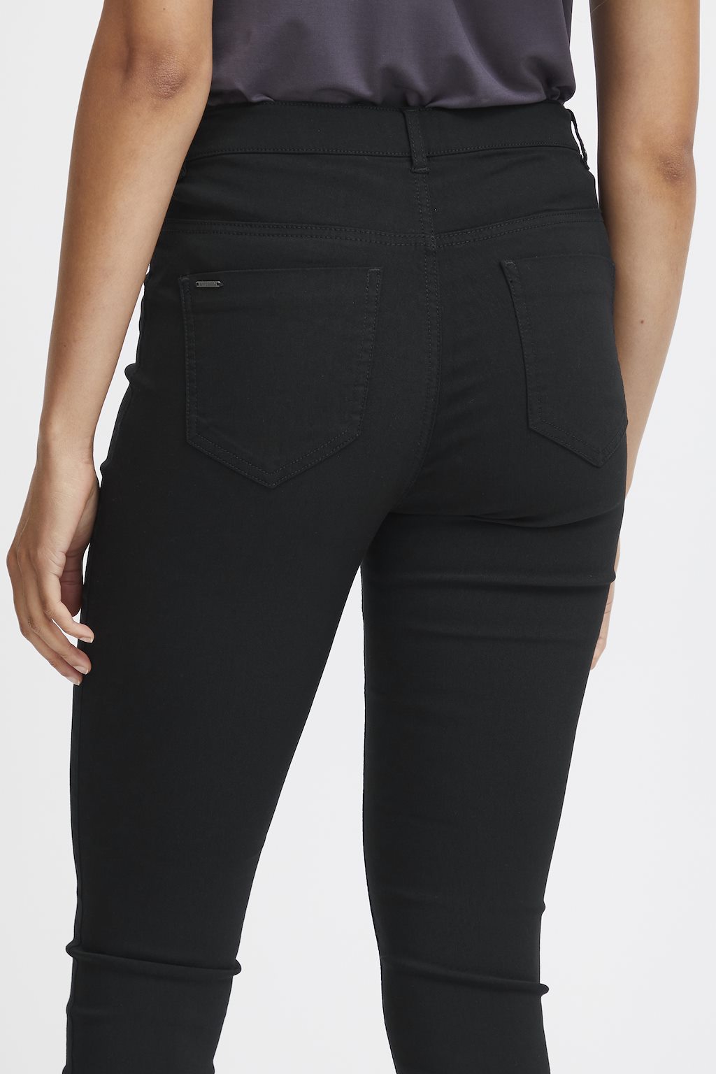 • Mid-rise waist.