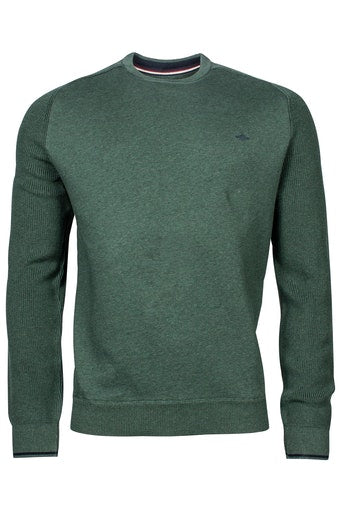 Knitted Sleeve Cotton Crew Neck - Green