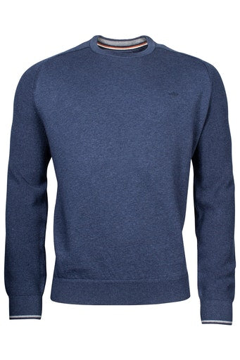Knitted Sleeve Cotton Crew Neck - Night Blue