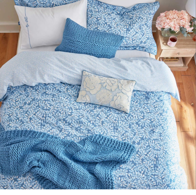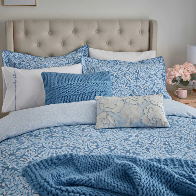 Be Still Foliage is a natural leaf design in calming blue tones, complimented by a smaller more delicate interpretation on the reverse. Created to instil a quiet confidence and beautifully made in 100% cotton.